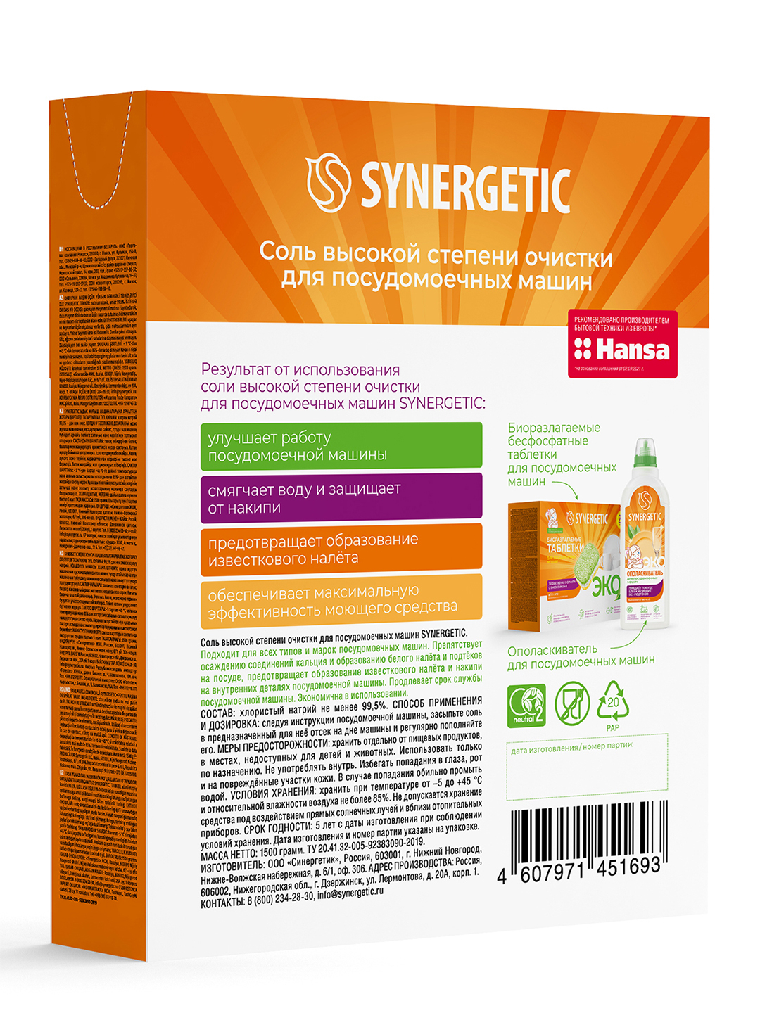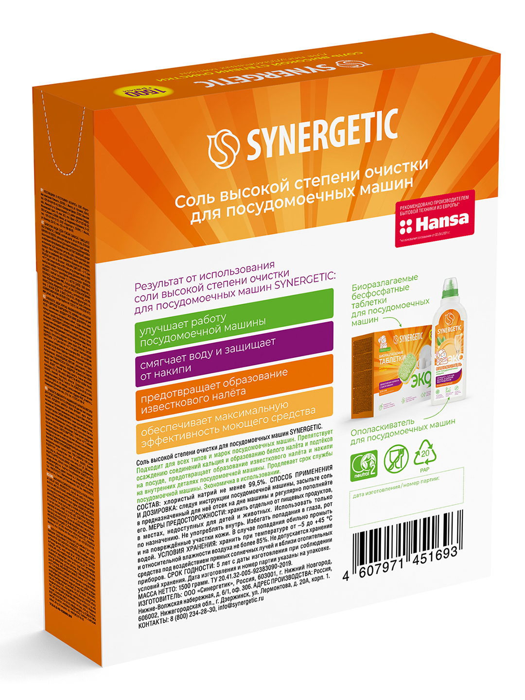 Synergetic соль для посудомоечных машин