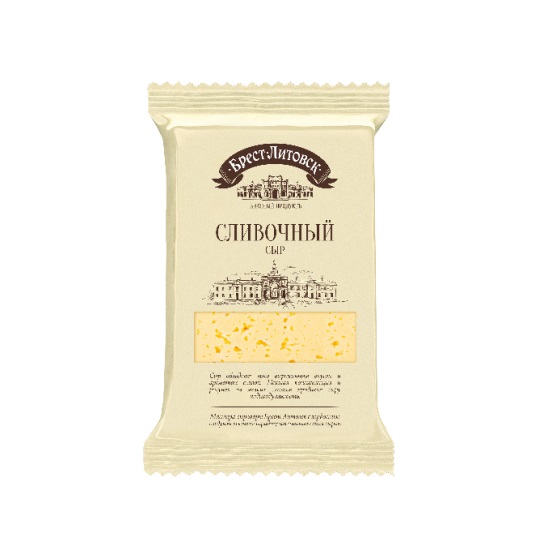 Сыр «Брест-Литовск сливочный» . Жирность — 50% . Срок годности: 120 суток при Т от 0 до +10 ºС и относительной влажности воздуха не более 90% . Сыр с ярко выраженным сливочным вкусом и нежной . . .