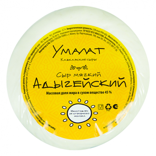 Адыгейский сыр "Умалат": состав продукта . Адыгейский сыр отечественной торговой марки имеет форму невысокого цилиндра, а вес головки составляет не более 400 граммов .