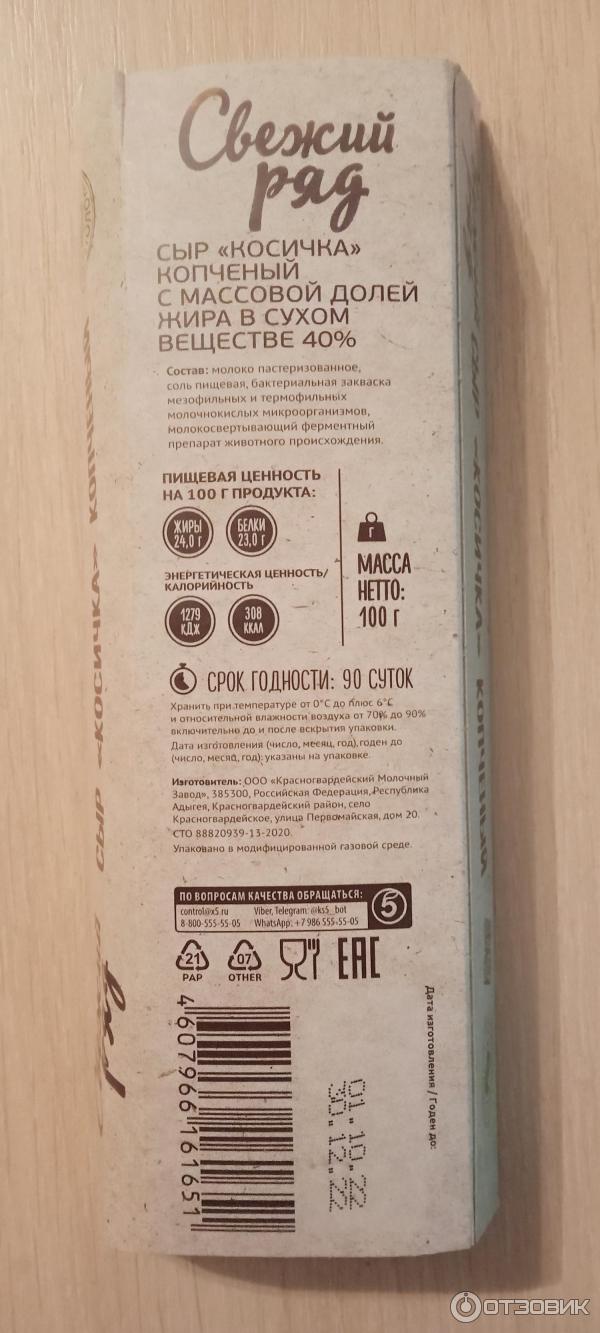 Сыр копченый свежий ряд