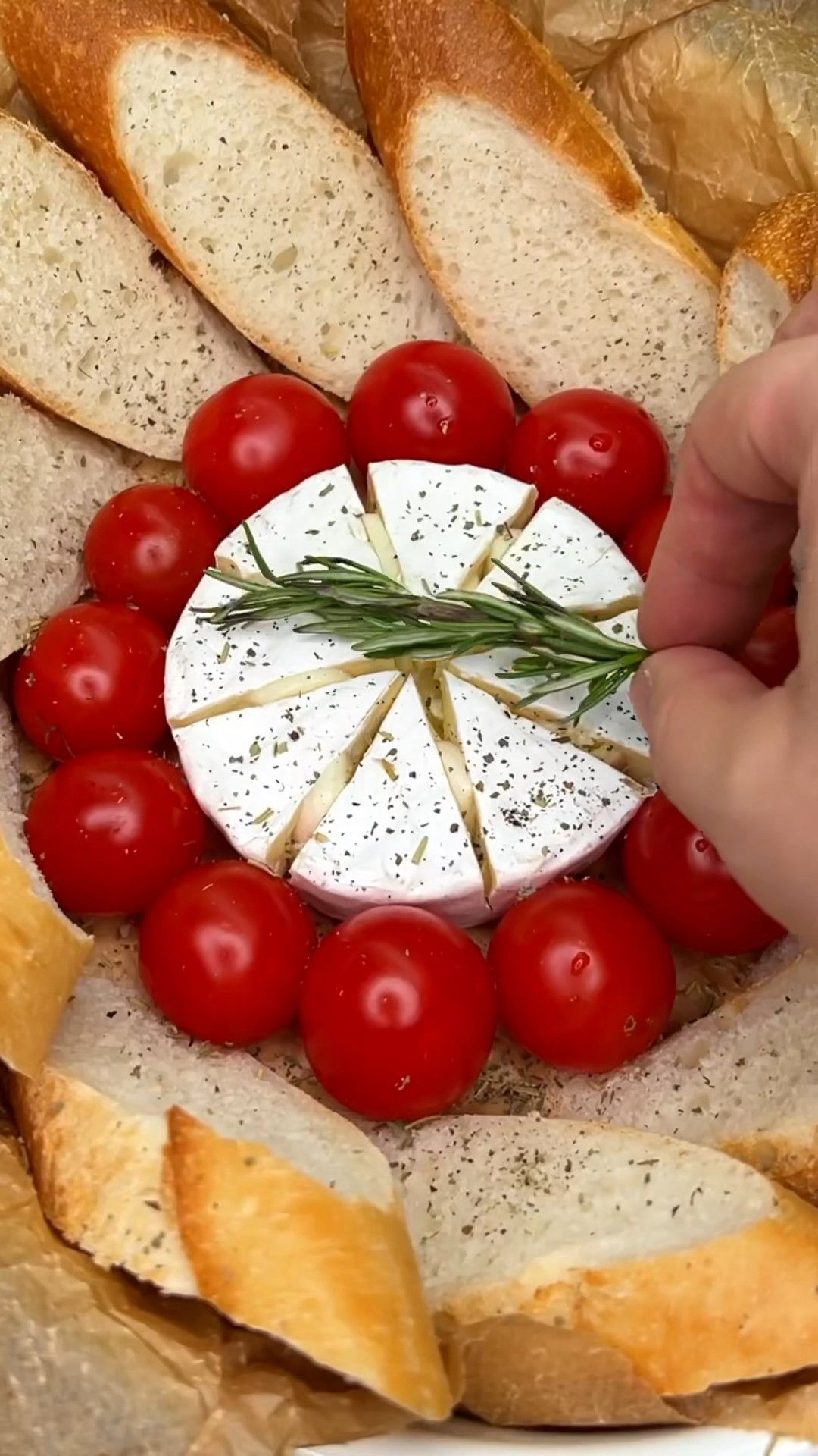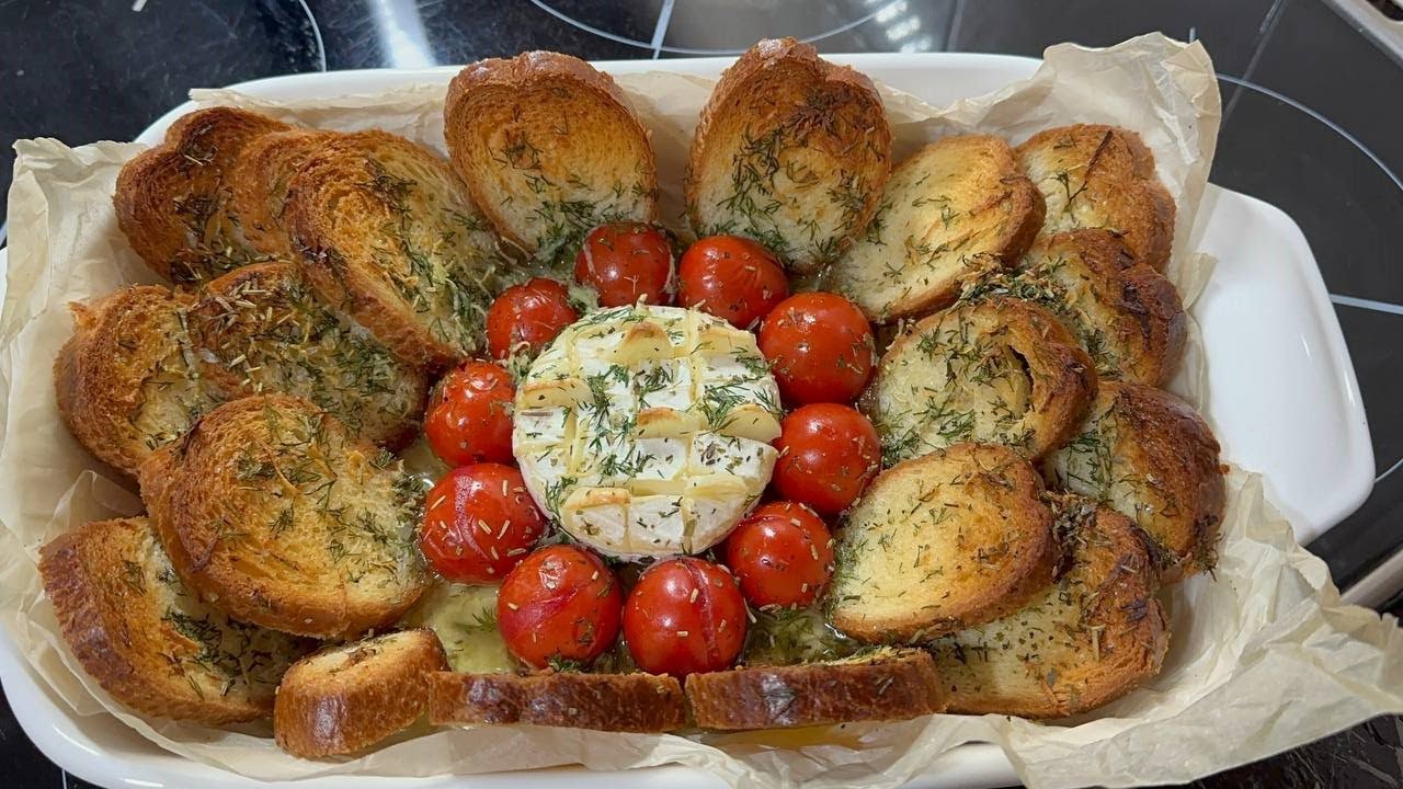 Сыр в духовке с багетом и помидорами