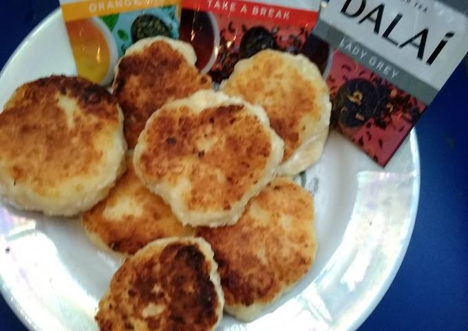 Творог 5% — 200 г, яйца куриные — 1 шт ., сыр российский — 40 г, зелень рубленая — 20 г, соль — 2 щепотки, рисовая мука — 3 ст . л . Шаг 1/7 . Шаг 1/7 . 1 . Желток (белок не используем) добавьте к творогу и разомните вилкой . Шаг 2/7 . Шаг 2/7 . 2 . Добавьте тертый сыр .