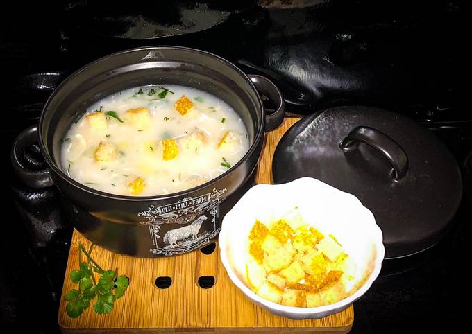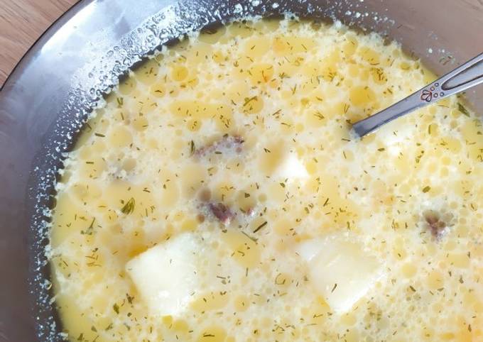 Сырный суп с рисом и лососем - кулинарный рецепт