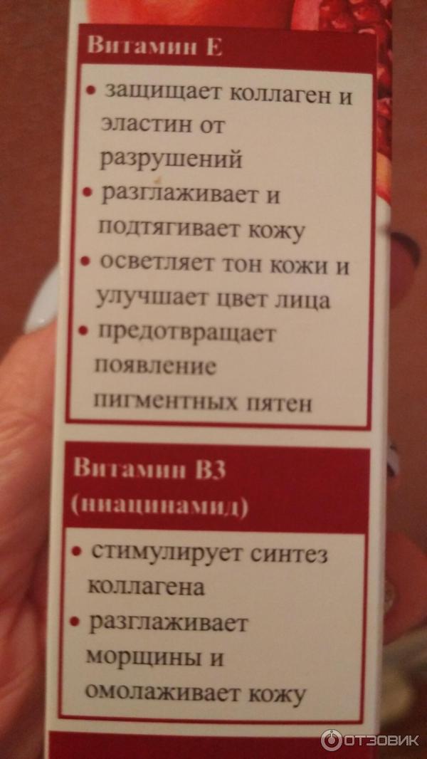 Экстракт граната богатый витамином В6 восстанавливает естественный тонус кожи и наполняет клетки кожи энергией . Сыворотка стимулирует выработку собственных белков соединительной ткани в клетках дермы и производит сильный омолаживающий эффект . Кожа становится вновь гладкой, упругой, увлажнённой, и выглядит моложе .