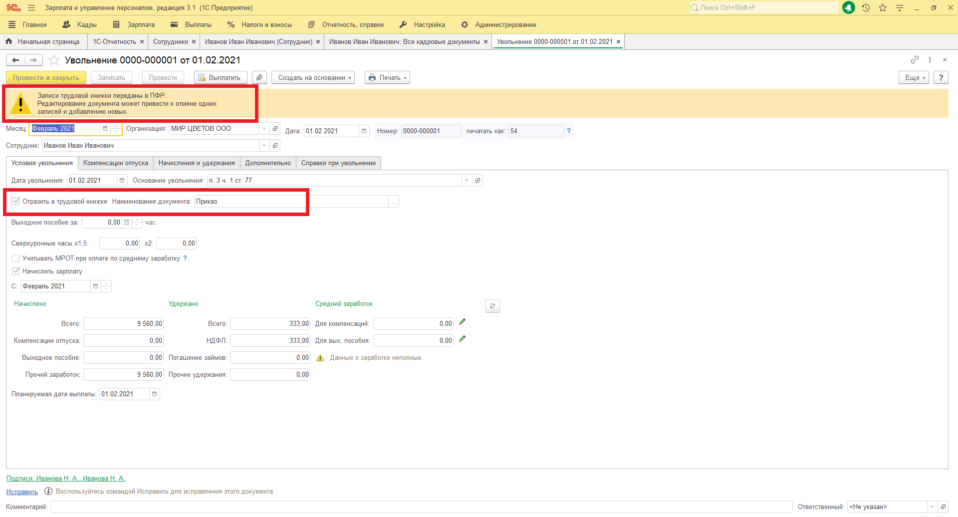 Сзв тд при увольнении зуп