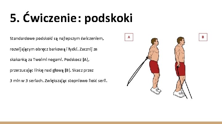Nie skacz za wysoko . To powinny być raczej minimalne, szybkie podskoki , a nie wysokie wybicia . W końcu masz przeskoczyć nad linką, która nie ma nawet centymetra średnicy . Ogranicz ruchy ramion . Tak jak w bieganiu - lepiej unikać wszystkich niepotrzebnych ruchów, które marnują energię . Dlatego pracuj głównie nadgarstkami . Poczuj rytm!