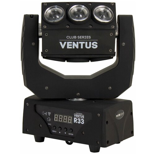 Tête LED multifaisceau LED (BEAM) Source lumineuse 9 pcs. Multichip 10 W RGBW Angle de faisceau de chaque lentille 9 ` Flux lumineux d'un faisceau à une distance de 3 m - 650 lumens Strobe 0-20 Hz Contrôle - DMX-512 (12/22 canaux) - Microphone intégré pour activation sonore - Mode automatique avec fonction maître/esclave - Écran LED avec boutons de navigation dans les menus Rotation PAN 630` TILT 200` (ou illimité) Alimentation 100-220 V, 50-60 Hz, 120 W Dimensions 336x264x150 mm Poids 5,36 kg Pays de fabrication : ChineInvolight Ventus R33 - tête LED multifaisceaux rotative, 9x10 W RGBW, DMX-512