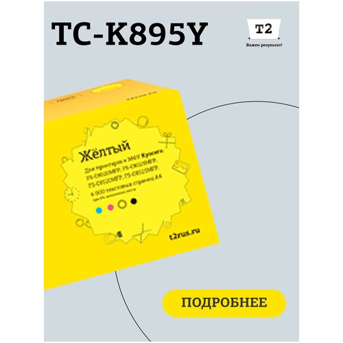 Cartouche laser T2 TC-K895Y pour imprimantes Kyocera, jaune. Convient aux imprimantes : Kyocera FS-C8020MFP, FS-C8025MFP, FS-C8520MFP, FS-C8525MFP.Type de produit : Cartouche ; Modèle : TK-895Y ; Type d'équipement : Toner ; Technologie d'impression de cartouches : Laser ; Objectif : Pour les appareils d'impression ; Couleur de l'encre : jaune ; Ressource (pages) : 6000 ; Modèles compatibles : FS-C8020/C8025/C8520/C8525 ; Numéros d'article de tous les produits compatibles : 1327712, 1270759.