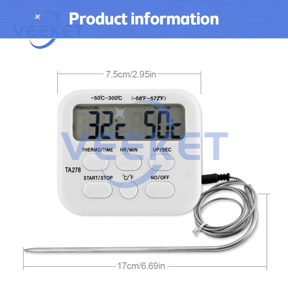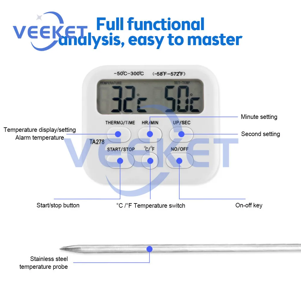 KmIxGDbSFHere you can buy TA278 Digital Thermometer Multifunction Kitchen Thermometer Timer Timer Food Thermometer White Stainless Steel Thermometer with free delivery to your post office.