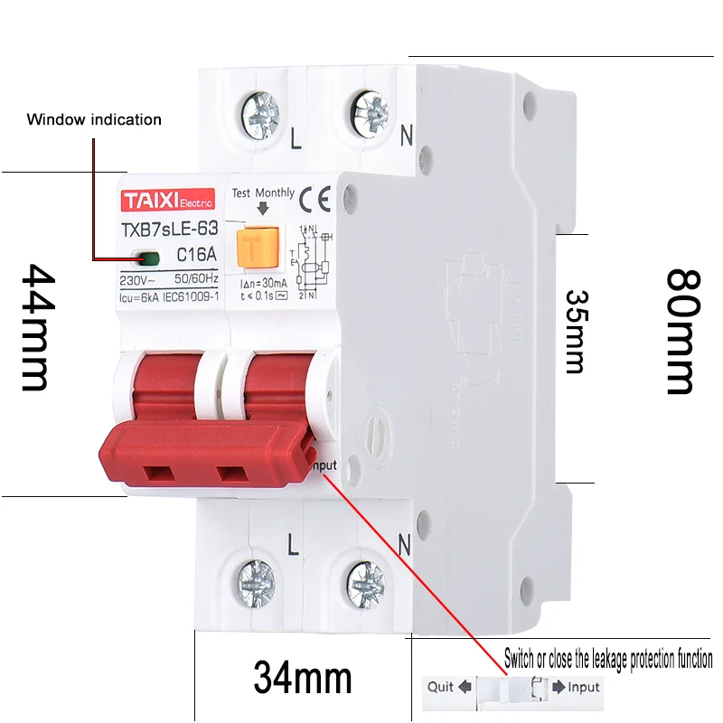 "TAIXI RCBO RCCB AC Type 32A 40A 63A 80A Residual Current Circuit Breaker RCD 15mA 30mA Leakage Protection MCB 220V 16A 20A" * Buy Now Just For 10$