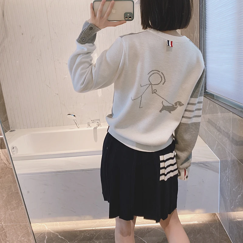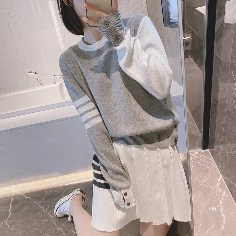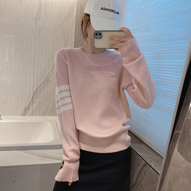 «TB Academy Style Pink Round Neck Pullover Women's Four Color Matching Loose Long Sleeve Sweater» по лучшей цене на рынке! Всего за 42$ (3990рублей)