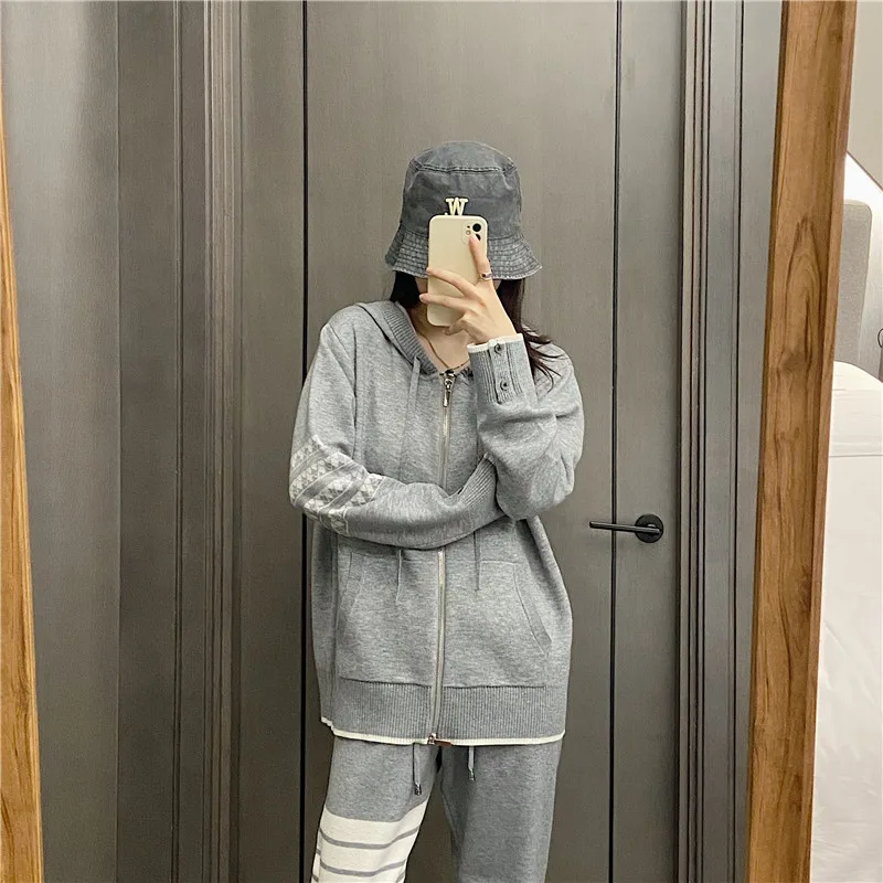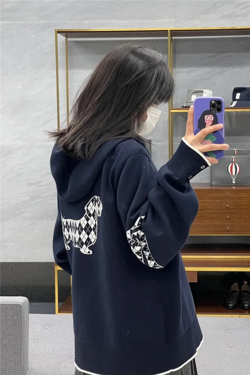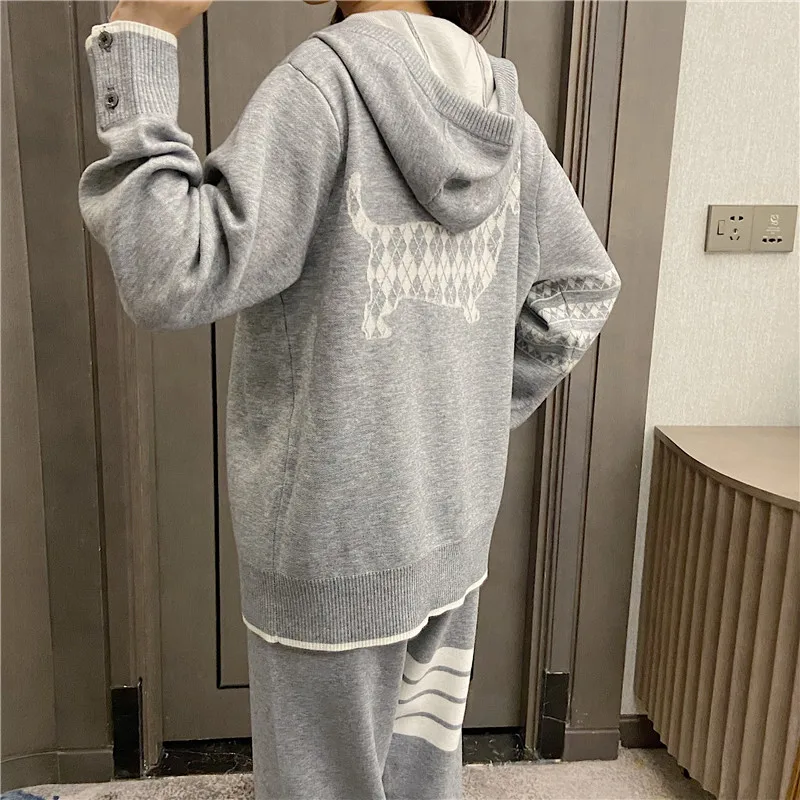 «TB Dog Knitted Hooded Sweater on The Back, Women's Design Sense, Small Crowd, Autumn and Winter 22 Loose Zipper Four Bar Coat» по лучшей цене на рынке! Всего за 49$ (4655рублей)