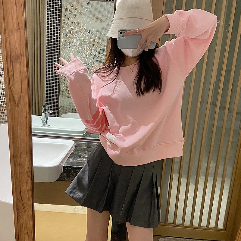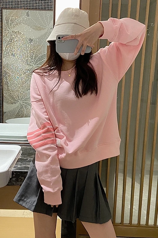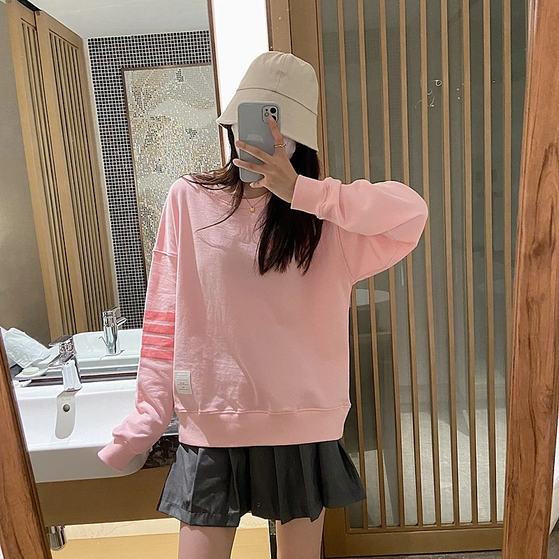«TB Four-bar Pink Sweater Female Thom College Wind Round Neck Age-reducing Loose Slimming Casual Long-sleeved Shirt Cotton» по лучшей цене на рынке! Всего за 43$ (4085рублей)