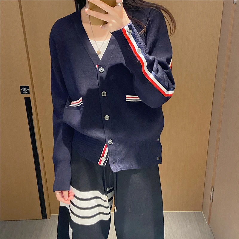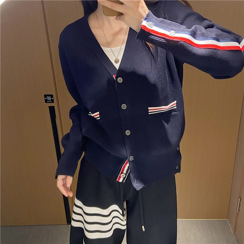 «TB Wool Knitted Cardigan Women's V-neck Double Sleeve Stripe Color Contrast Slim Korean Spring and Autumn Sweater Top Coat» по лучшей цене на рынке! Всего за 94$ (8930рублей)