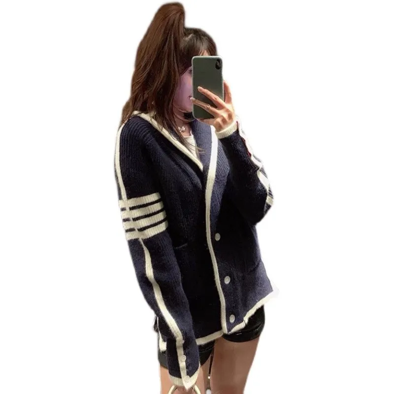 «TB autumn and winter classic four-bar lapel knitted cardigan women's loose and lazy style age-reducing sweater» по лучшей цене на рынке! Всего за 35$ (3325рублей)