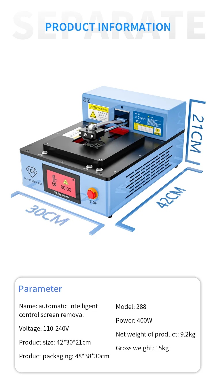 HDDpnGjNSHere you can buy TBK 288 Built-in Pump Vacuum LCD Screen Separator Fully Automatic Intelligent Control Screen Removal Tool for iPhone 5S-13ProMax with free delivery to your post office.