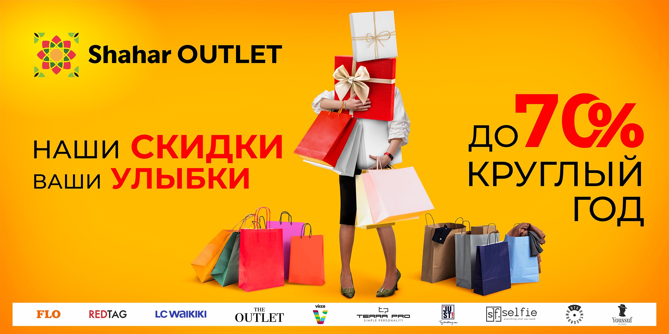 Экономьте свой бюджет в Shahar OUTLET! На территории площадью 14,5 тыс. кв. м разместятся 15 магазинов с постоянными честными скидками до 70%: