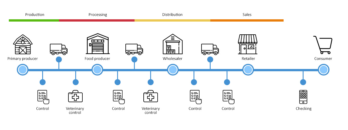 Итак, свой собственный блокчейн, свой рынок, приложение для идентификации продуктов. В блокчейн заносятся данные от производителя: чем коровку/курочку/хрюшку (добавь своё любимое животное для поедания, сорри веганы) кормили, как лечили, кто массажировал ей лапки, когда зверь стал продуктом, кто и как доставлял, качество оценки гос. службами. Это всё попадает в блокчейн. Клиент в магазине просто подходит к продукту, сканирует его код приложением и получает полную информацию о продукте.