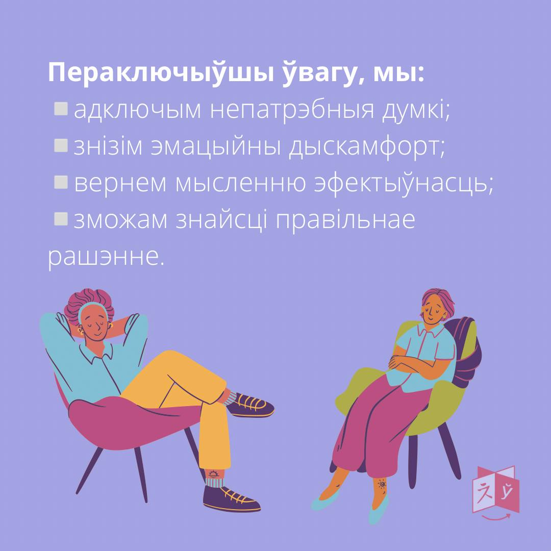 Адна з эфектыўных псіхатэрапеўтычных тэхнік, якая дапамагае зменшыць трывогу, заснаваная на феномене пераключэння ўвагі з мыслення на ўспрыманне.