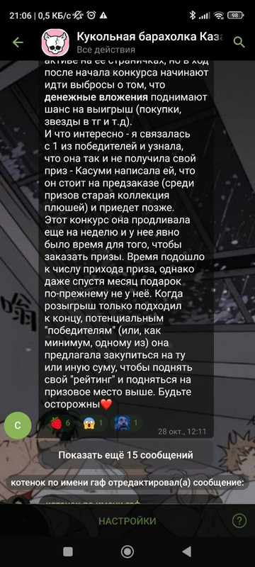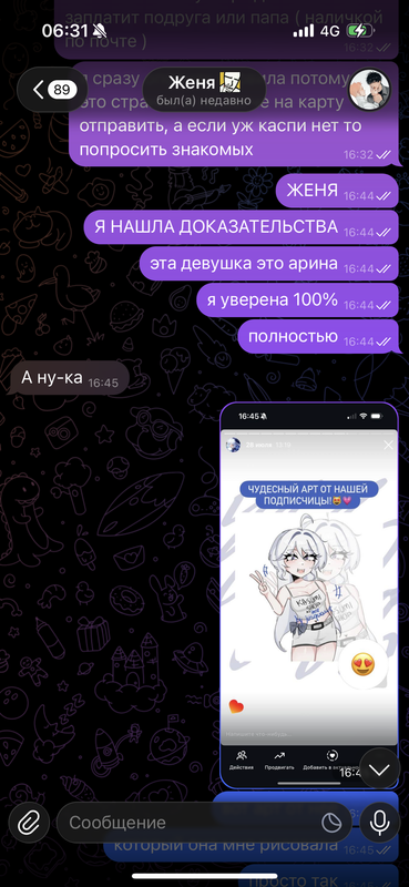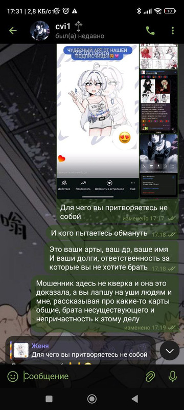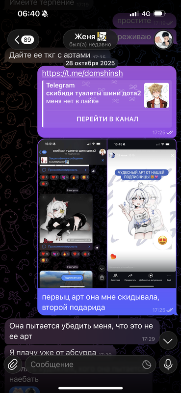 когда я это увидела я просто ахуела и сразу написала Админу тгк. предъявила все доказательства, переписку полностью от и до. после чего ее пост был удален и ее заблокировали в тгк.
