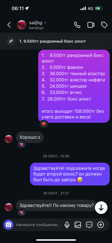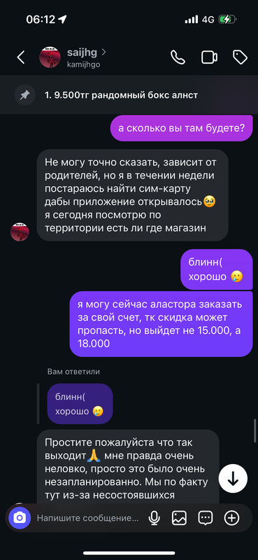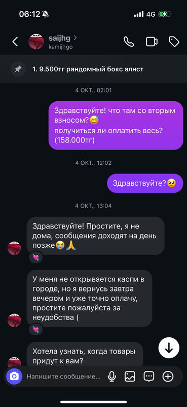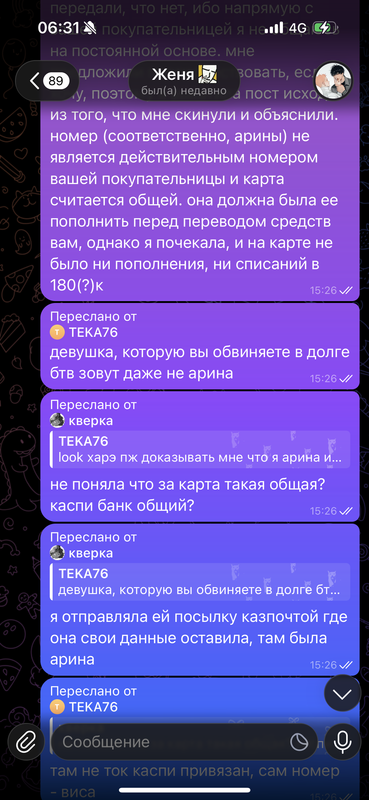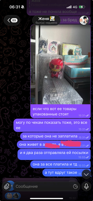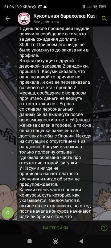 ( пост был написан ей в телеграм канал «КУКОЛЬНАЯ БАРАХОЛКА КАЗАХСТАН» с более 30.000 человек со всего Казахстана и не только. здесь сидят посредники, шопы как я и просто люди, которые хотят купить что-то. пост был удален Админом тгк - Женей, скрины, которые я предъявила снизу были сделаны ей после удаления поста. )