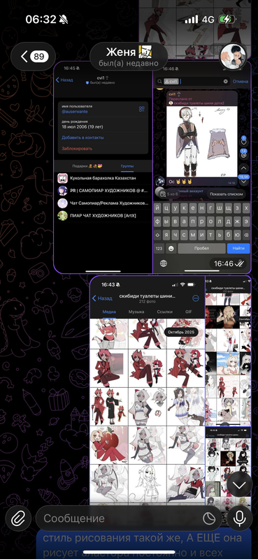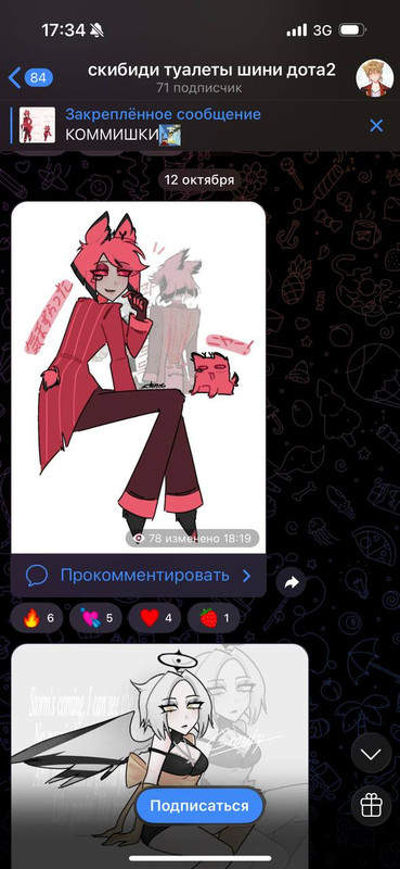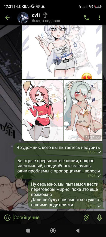 и тут: я вспоминаю про арт, который мне рисовала Арина в качестве благодарности за «доброту». она нарисовала фурину, так как она является частично маскотом моего шопа. а после я нахожу ее тгк через ее ник в пиар чатах, чатах самопиара и тд: