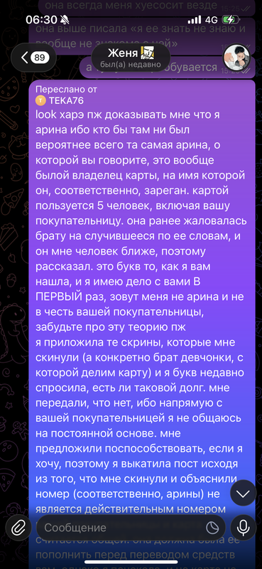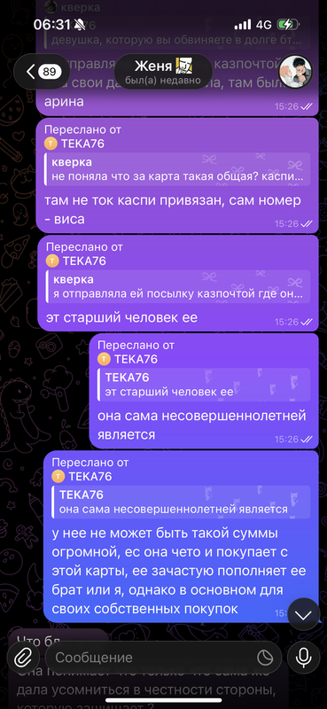 далее идет переписка уже Админа Тгк и Теки: напоминаю действия происходят в октябре 2025 года
