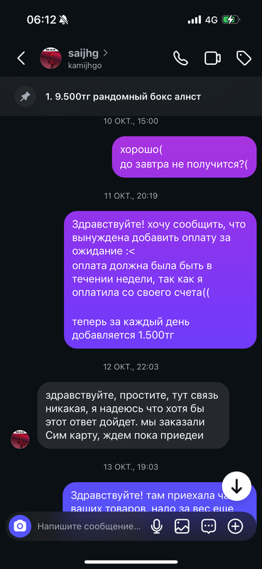 Последний скрин: я пишу, что если она так и будет убегать от неоплаты я напишу на нее заявление. это была последняя капля и я жду следующего дня. но не тут то было?