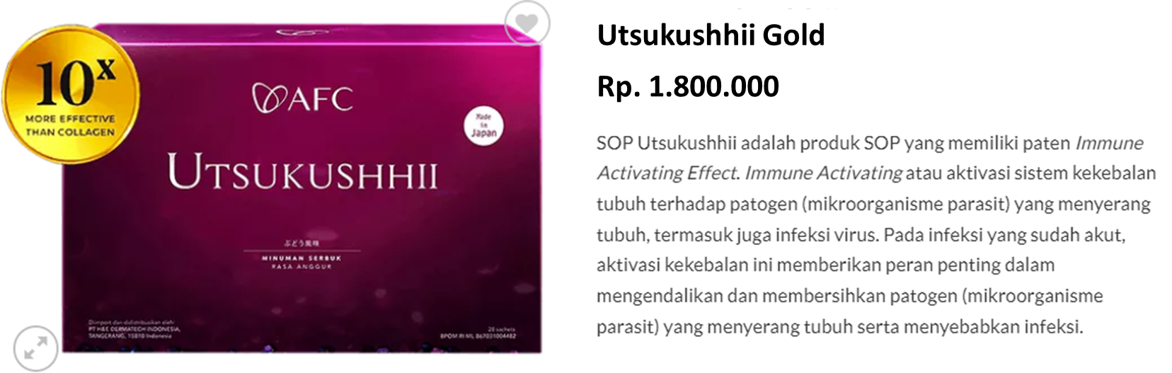 1 BOX UTSUKUSHHII GOLD ISI 28 SACHET - Rp.1.800.000,-