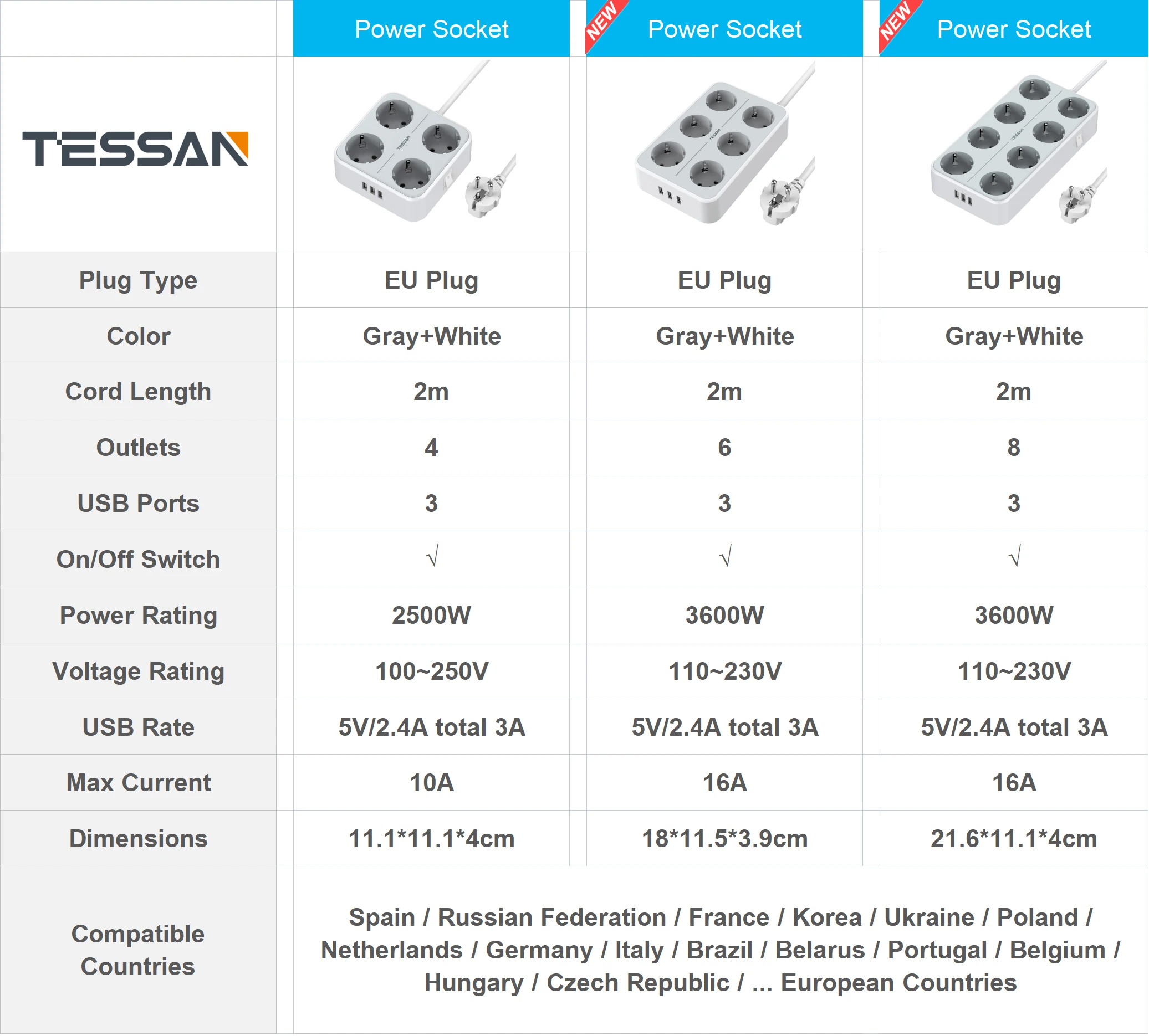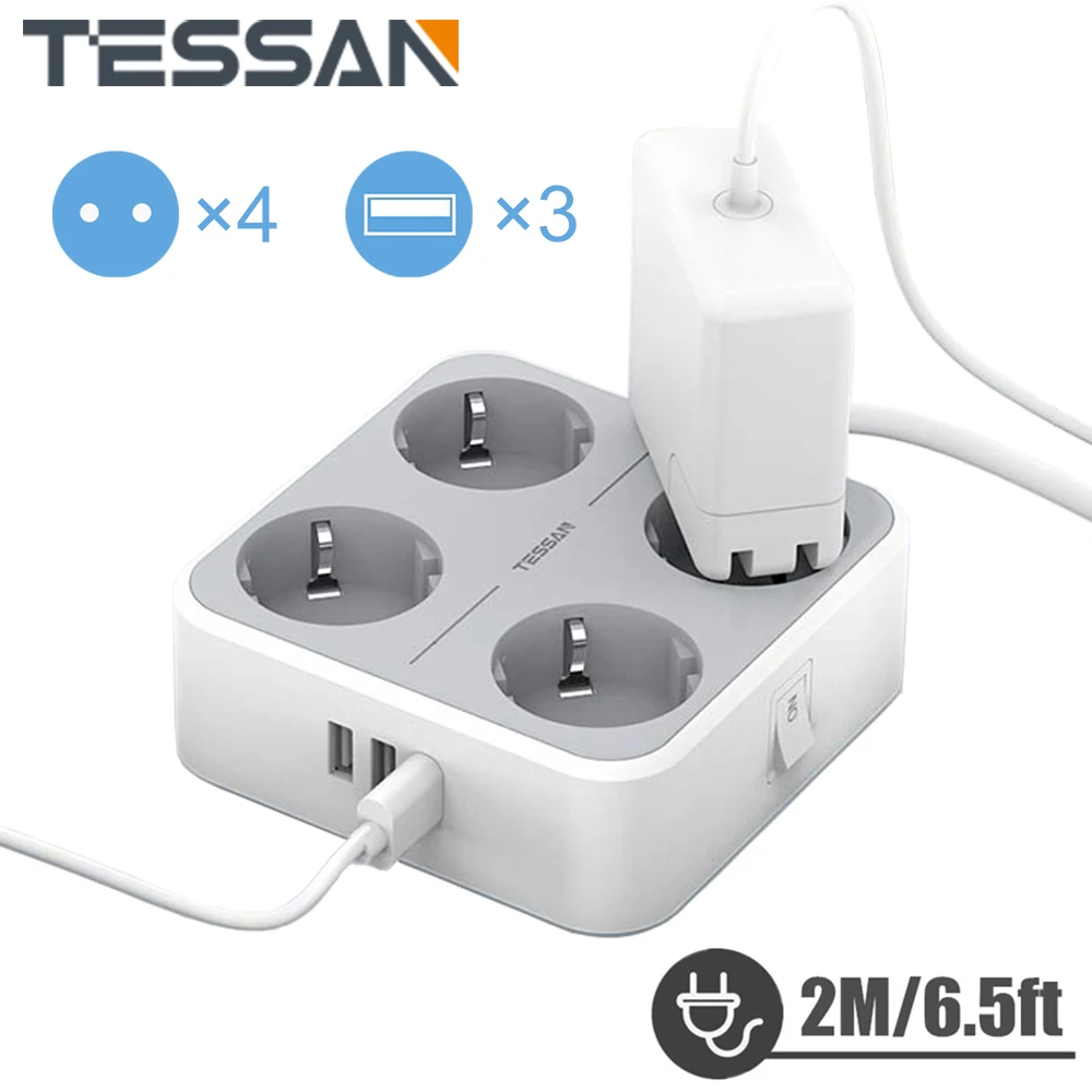 SHFiLphgЗдесь вы сможете купить TESSAN Multi Socket Wall-Mounted Power Strip with Switch 4/6/8 AC Outlets 3 USB Ports EU Extension Socket with 2M Cable for Home с бесплатной доставкой до вашего почтового отделения.