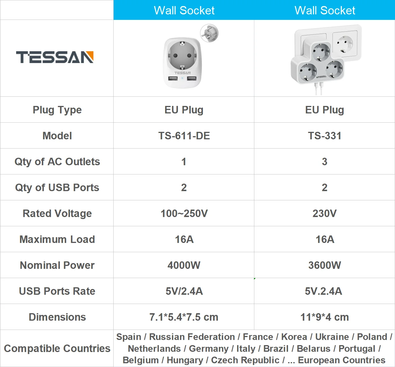 GPIVgWHEWXЗдесь вы сможете купить TESSAN Power Strip EU Multi Outlets Extender with USB Ports, Europe Korea Plug Electrical Socket Adapter Charger for Home Office с бесплатной доставкой до вашего почтового отделения.