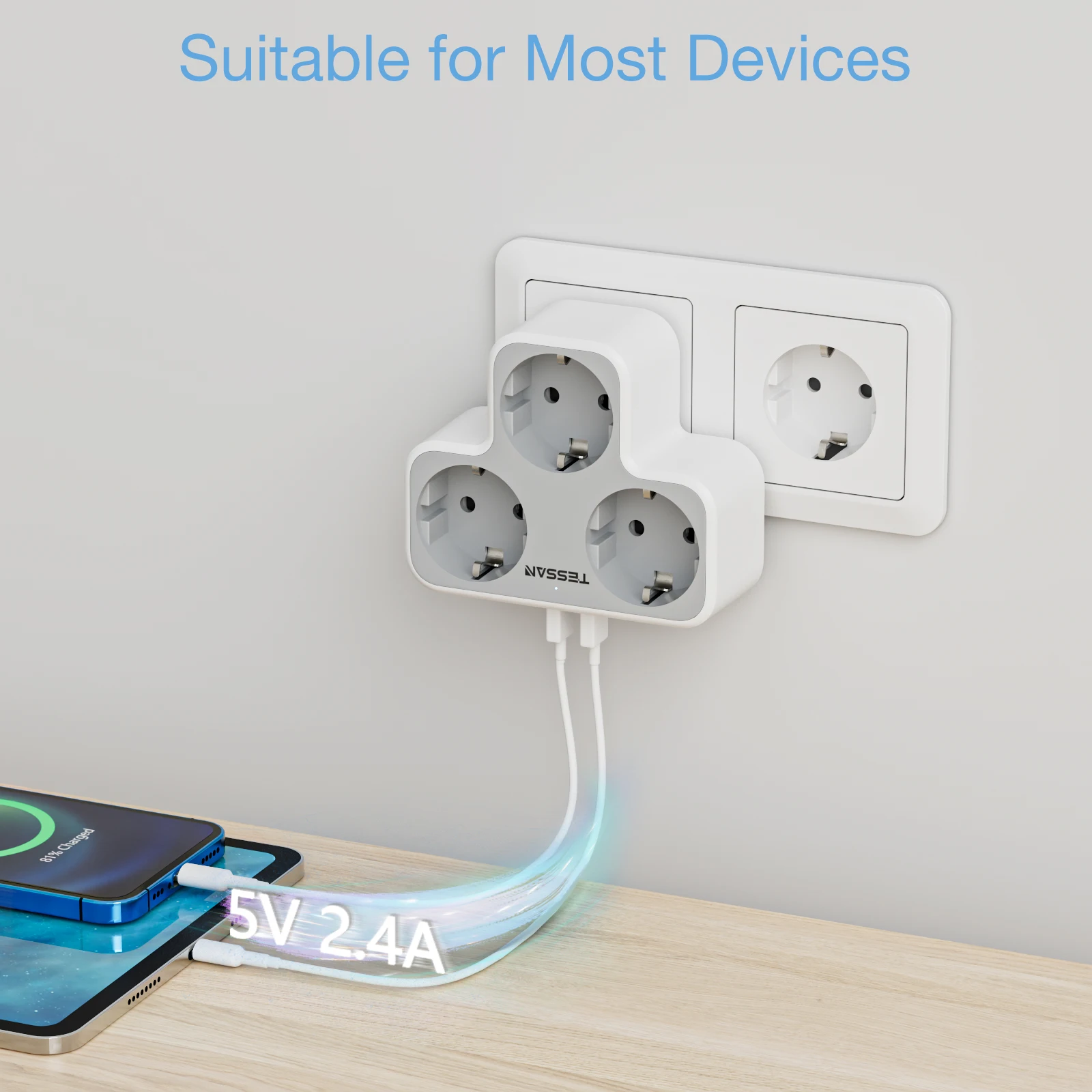 TESSAN Power Strip EU Multi Outlets Extender with USB Ports, Europe Korea Plug Electrical Socket Adapter Charger for Home Office - Купить с бесплатной доставкой