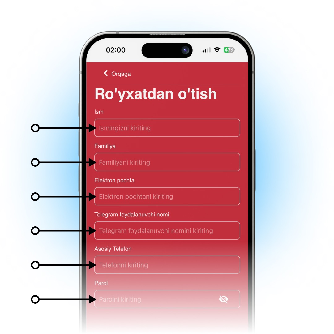 Saytda va ilovada ro'yxatdan o'tish bo'yicha bosqichma-bosqich ko'rsatmalar