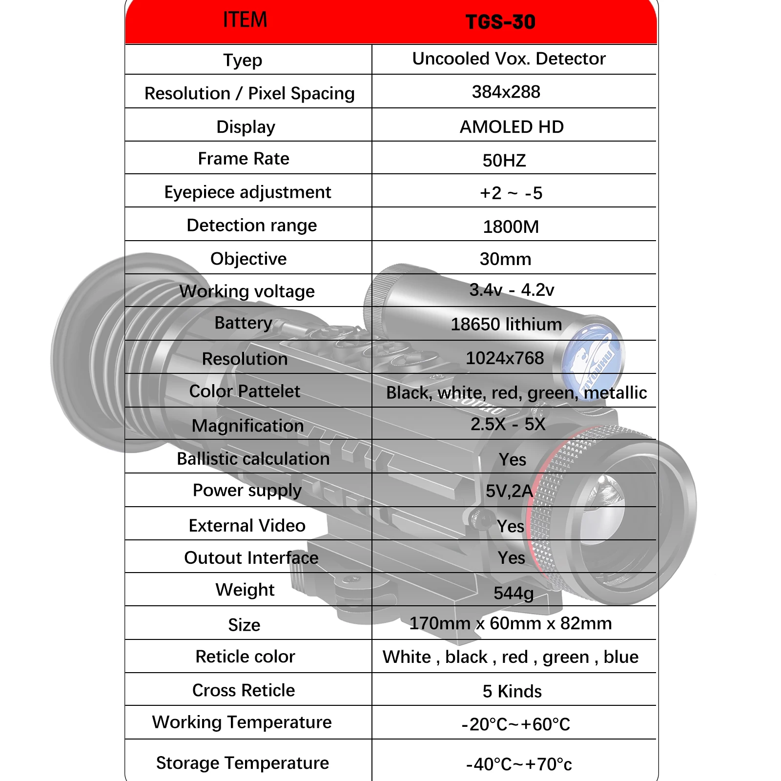 ckYLEFozsHere you can buy TGS30 Hunting Thermal Vision Sight Riflescope IR Tactical BDC Reticle 6 Color Palette Hotspot Tracking Thermal Imager Monoculars with free delivery to your post office.