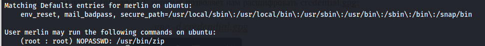 Нам доступен запуск команды zip с правами суперпользователя. Идем на gtfobins и спавним шелл: