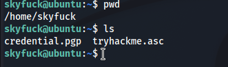 Сразу же видим интересные два файла. При попытке чтения credential.pgp становится ясно, что файл зашифрован. tryhackme.asc же содержит приватный ключ.