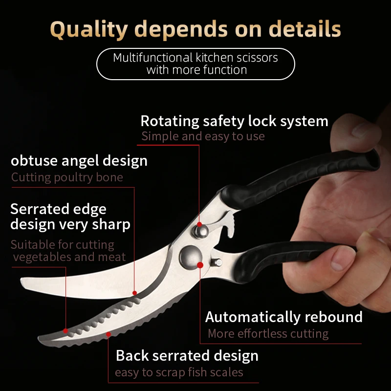 TOLIMER Kitchen Powerful Chicken Bone Scissors Stainless Steel Blade PP Handle Chicken Duck Fish Cutter Shears Sharp Cook Knives - Купить с бесплатной доставкой