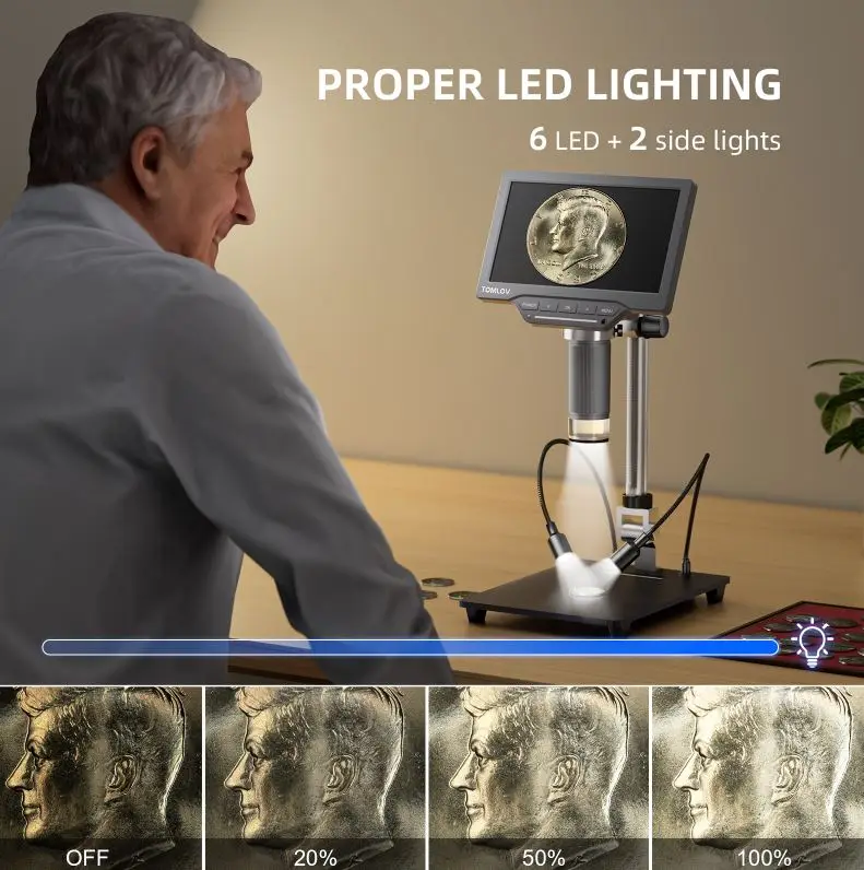CVCUgJmEHere you can buy TOMLOV USB Digital Microscope 7 Inch Large Color LCD Screen Inspection DM201 SE 12MP 1-1200X Continuous Amplification Magnifier with free delivery to your post office.