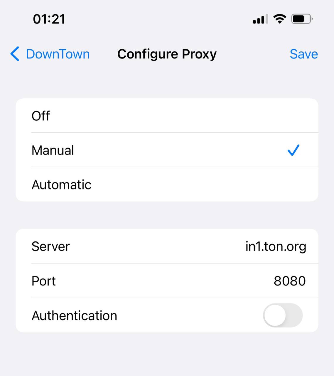 Karena TON Proxy kompatibel dengan HTTP Proxy, kamu cukup membuka pengaturan di browser atau pengaturan sistem kamu dan memasukkan alamat proxy entri TON publik sebagai server proxy.