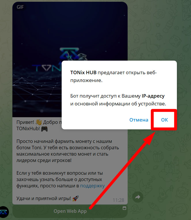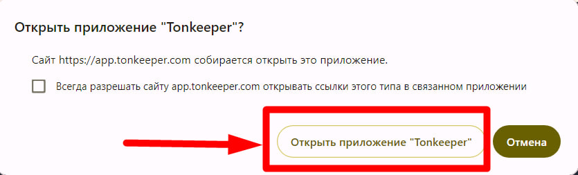 5. Откроется всплывающее окно "Открыть приложение Tonkeeper"