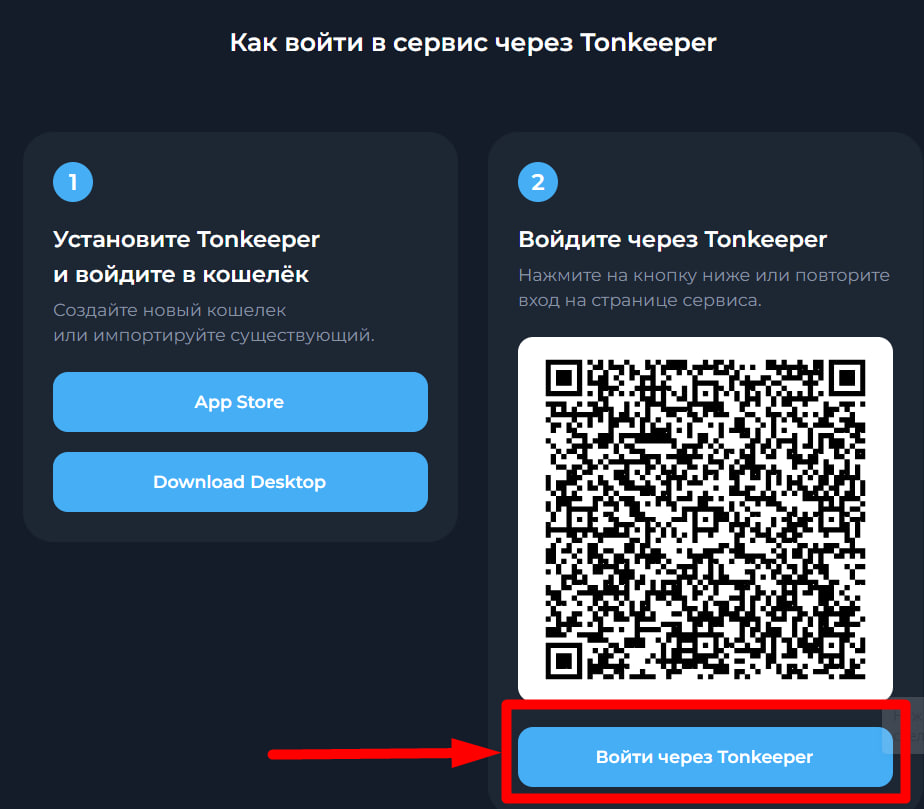 4. Войдите через Tonkeeper