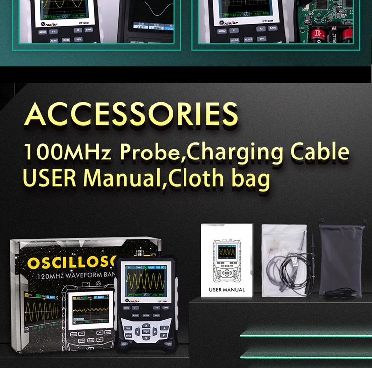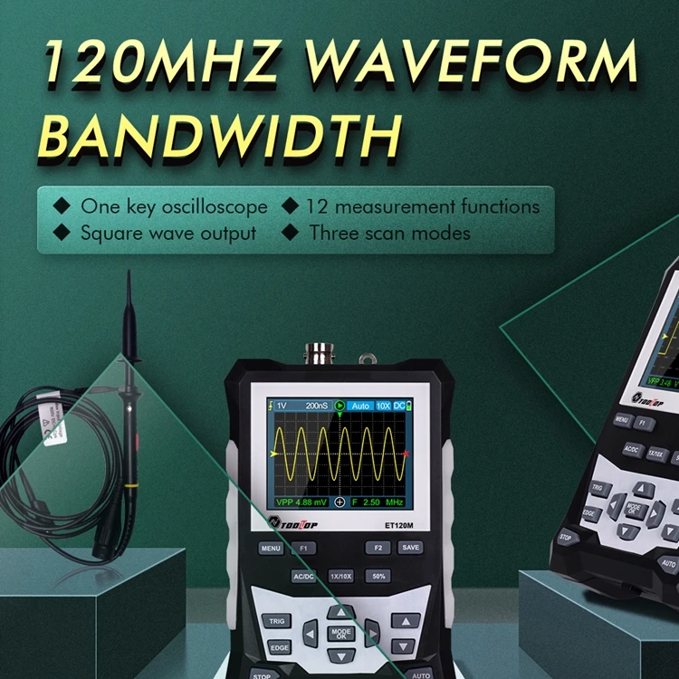 TOOLTOP ET120M Digital Oscilloscope with Backlight 120MHz Bandwidth 500MS/S Sampling Rate Analog Waveform - Купить с бесплатной доставкой