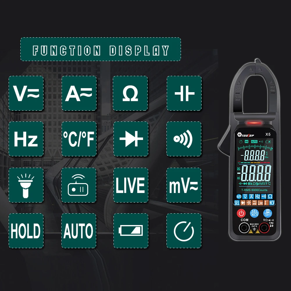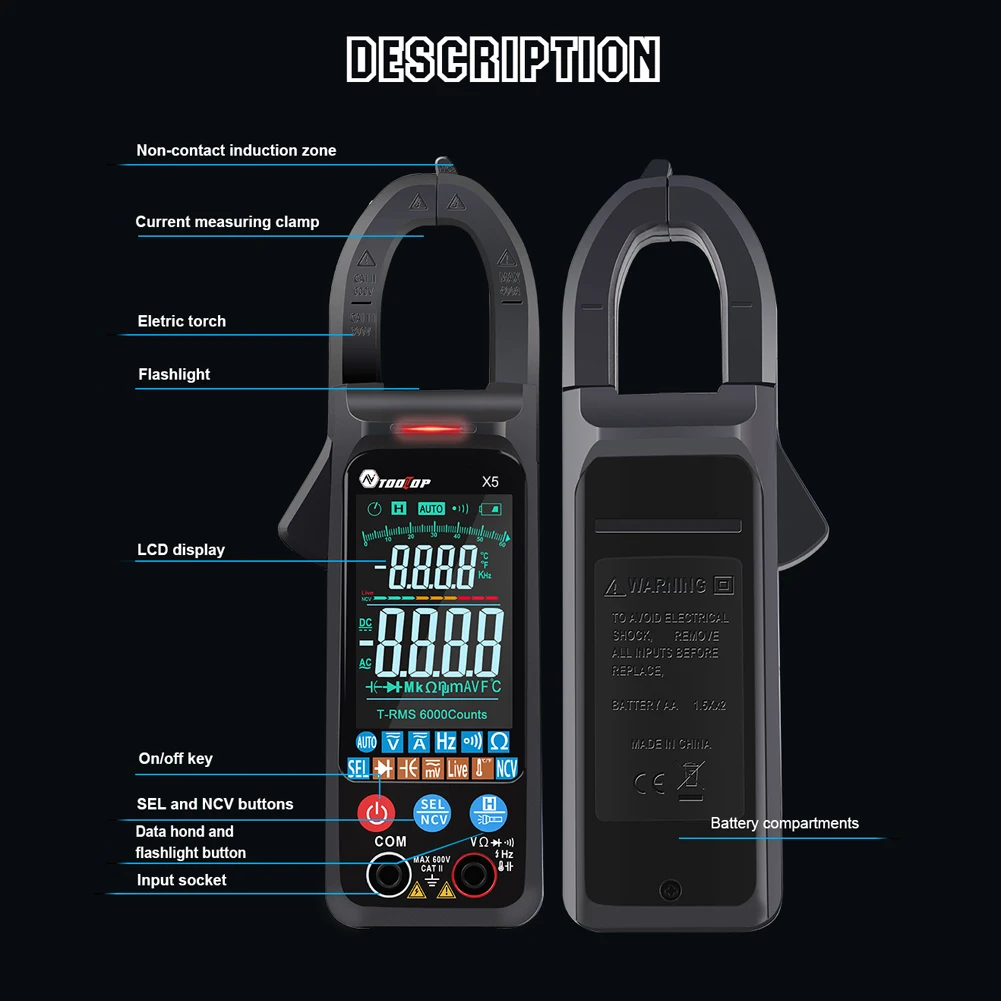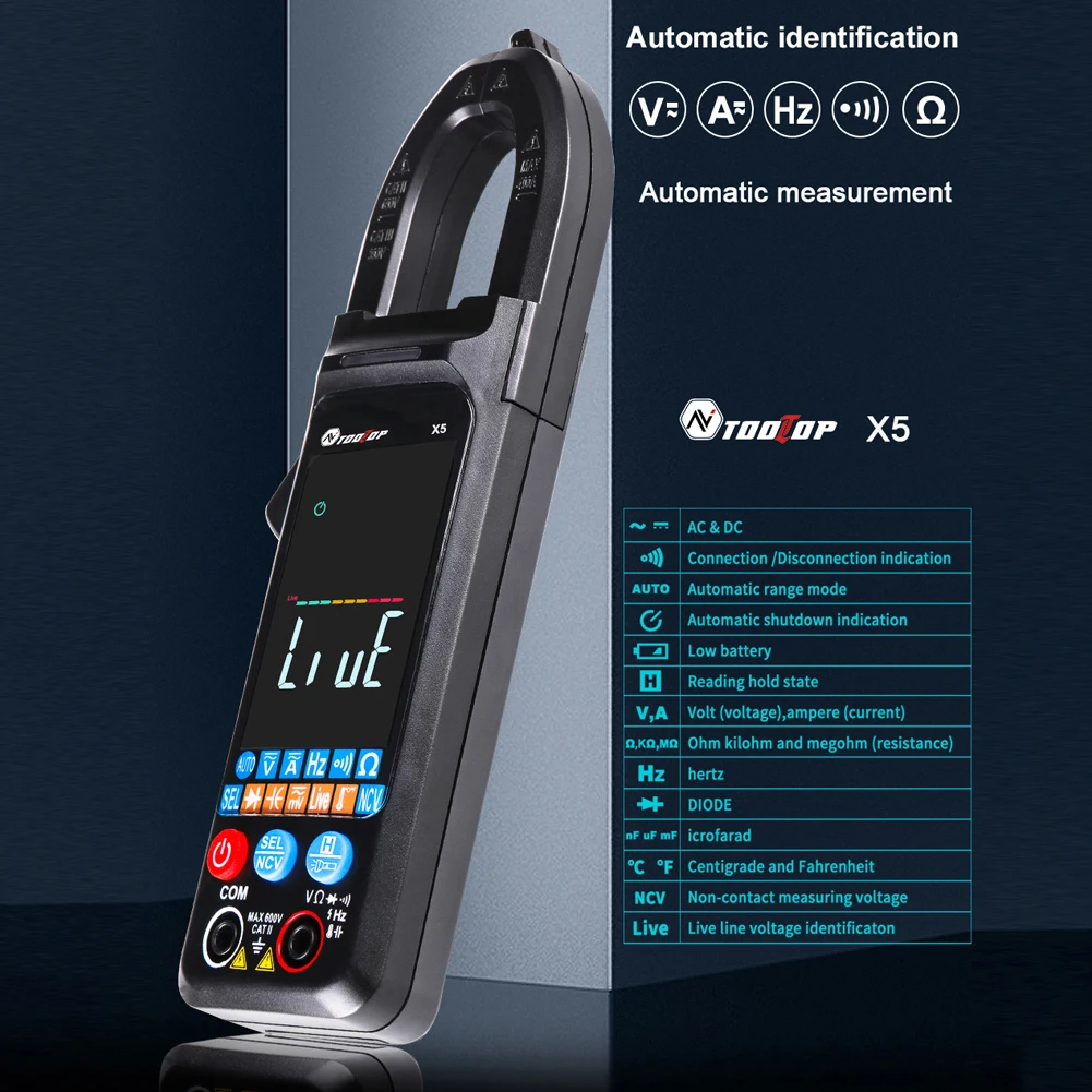 fNFYBFyuCHere you can buy TOOLTOP X5 Digital Clamp Meter Digital AC DC Current Clamp Meter Voltage Resistance Capacitor Temperature Frequency Multimeter with free delivery to your post office.