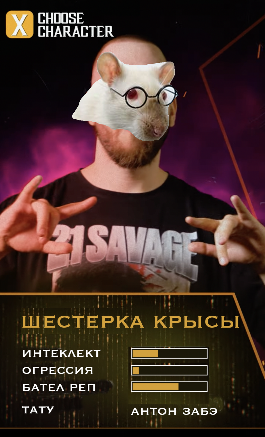Позиционирует себя онлайн бойцом, но до сих пор не нашел кнопку сведения трека, поэтому все его треки ссанина. Поняв это, стал судьей, но письку Фломастера не нюхал, а значит его мнение вообще не считается за адекватное.