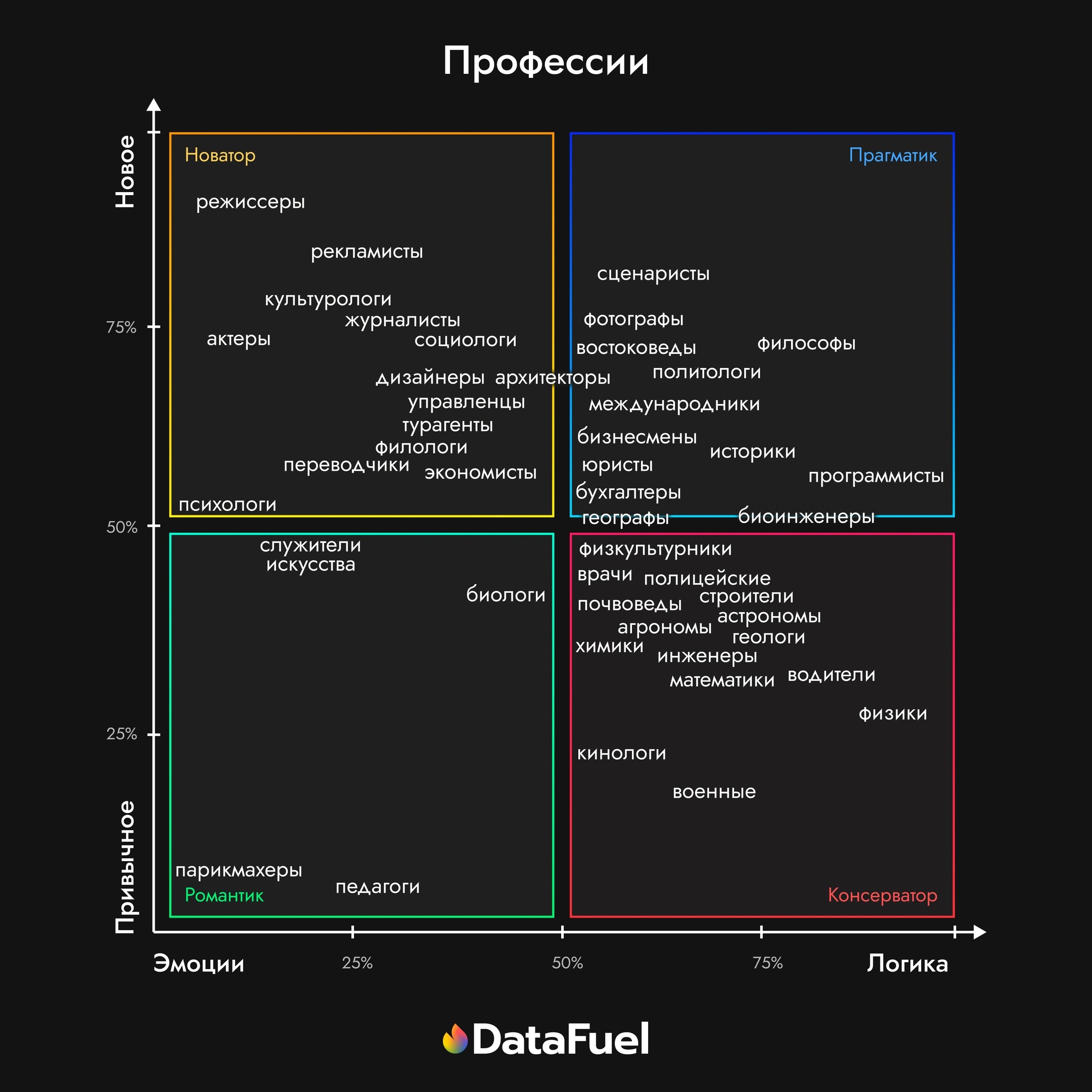 Психографическая карта, которая показывает связь между психотипом и профессией, находится на 8 месте нашего дайджеста: