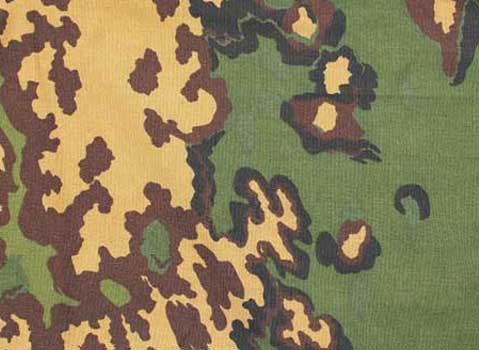 Немецкий камуфляж, очень лесной и очень универсальный за счет добавления коричневого цвета. Немцы еще в 40-е годы поняли, как надо. Очень хорошо в любом лесу, в том числе в бору сосновом, где стволы деревьев часто не занружены листвой/хвоей.