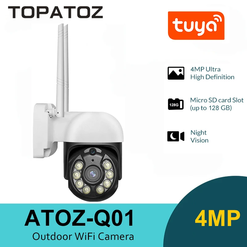TOPATOZ 4MP Tuya PTZ WiFi Camera Outdoor Home Security Surveillance Camera Night Vision Motion Tracking CCTV Camera - Купить с бесплатной доставкой