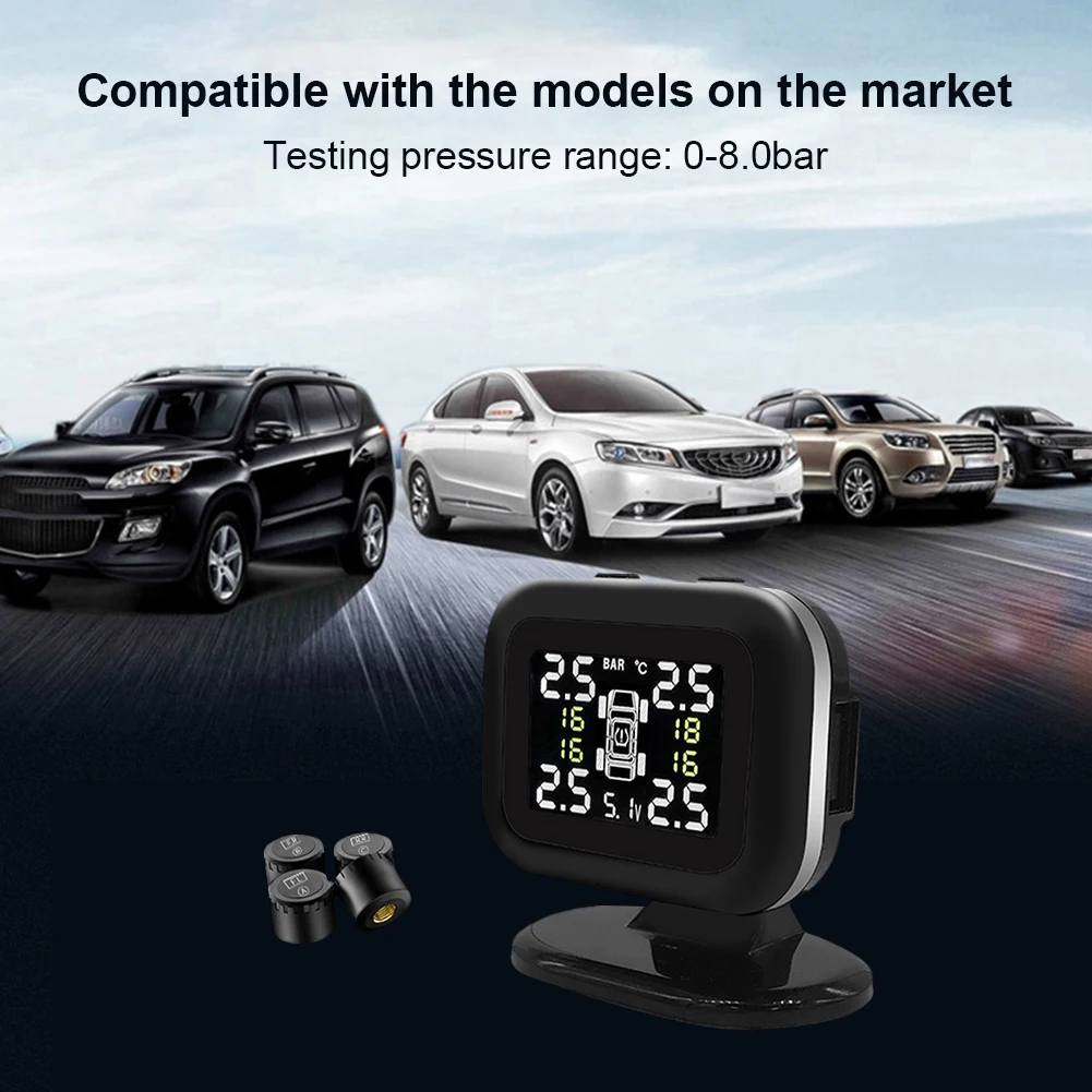 TPMS Car Tire Pressure Monitoring System External USB Rechargeable with LCD Tire Pressure Temperature Alarm System with 4 Sensor - Купить с бесплатной доставкой