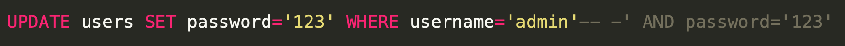 Часть запроса после юзернейма будет закомментирована и не будет обрабатываться.