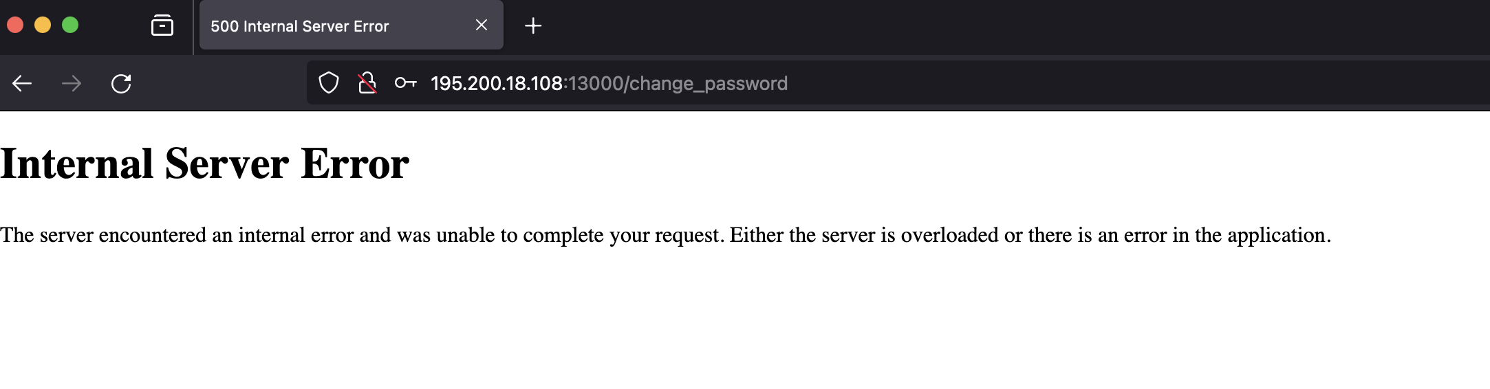 При попытке сменить ему пароль ловим Internal Server Error: